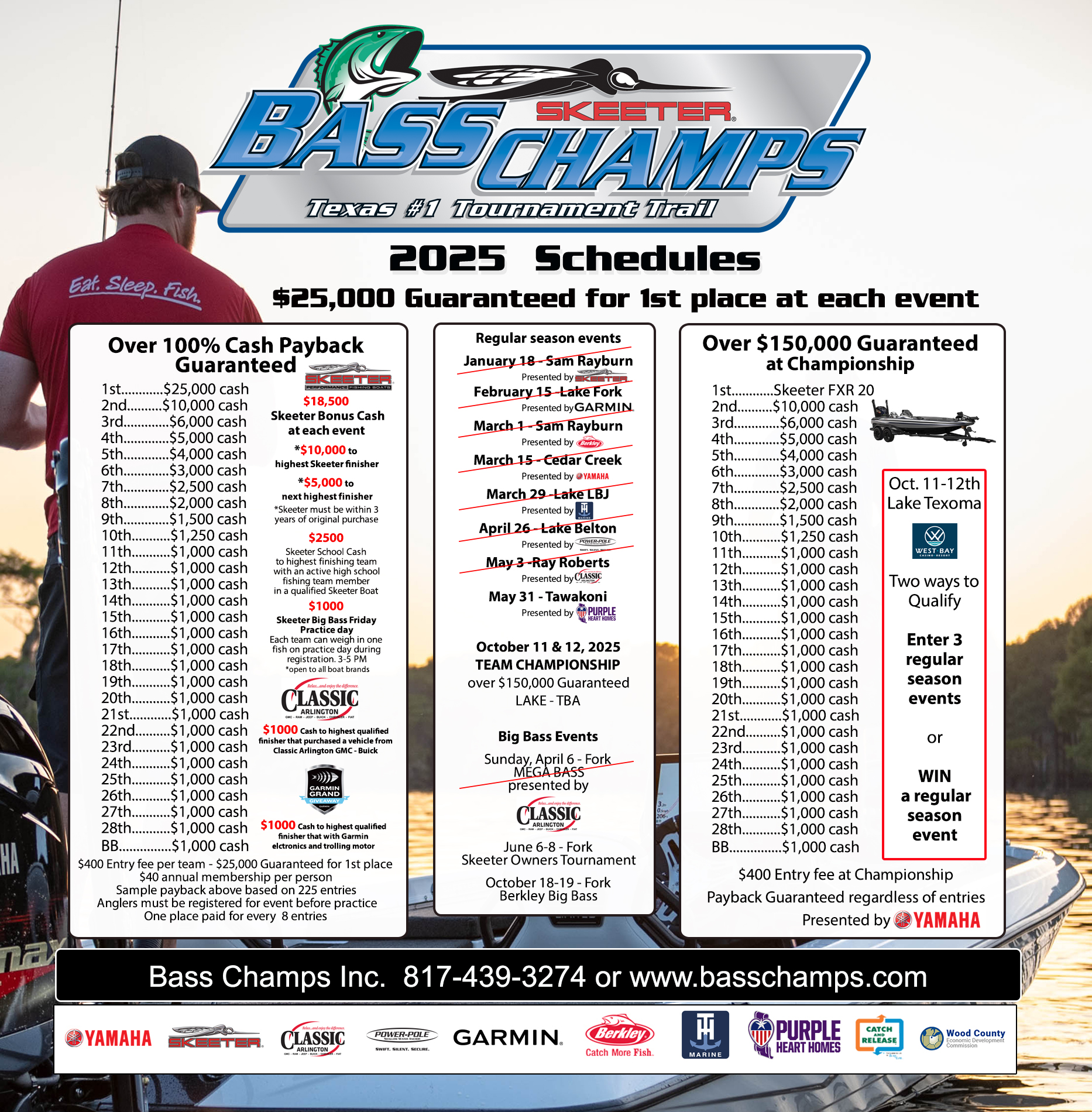 + $2,500 Highest finishing High School team member angler in a Skeeter)